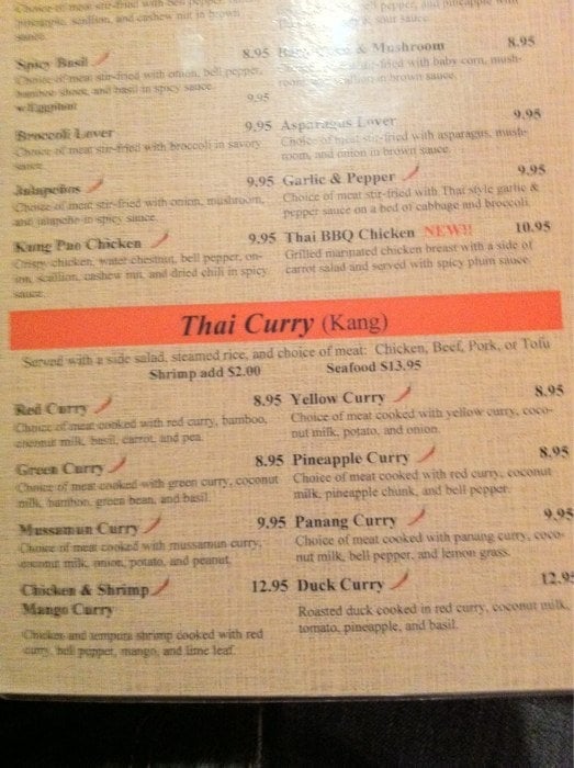 Choice of meat cooked with panang curry, coconut milk, bell pepper and lemon grass.